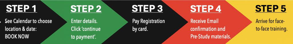 Day 1 (on Calendar) 6:45am face-to-face training.... Day 2 (not shown on Calendar) 6:30am Assessment day usually the next day -- finish time would usually be by 2pm. By registering for this course, you are agreeing with all terms and conditions.